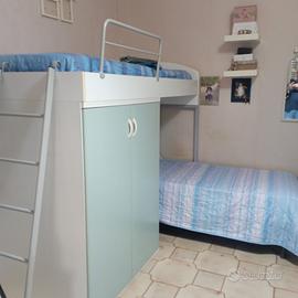 ...cameretta x ragazzi...2 moduli con armadi tot. 6 ante e 3 posti letto di cui 2 a castello. Misure ciascuno modulo lunghezza mt.2 x prof. cm.92.