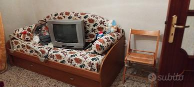 Guardaroba, lettini una a scomparsa tipo divano come foto, armadietto, angoliere, tavolino tv. Compreso anche lampadario e tenda.