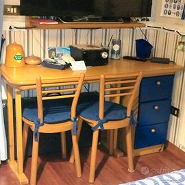 vendesi cameretta stile navale con libreria , scrivania sdoppiabile, due sedie in legno massello, due comodini a tre cassetti, due letti singoli a sofà,un armadio a sei ante misure cm 280x60 x240h con plafoniera superiore di luci