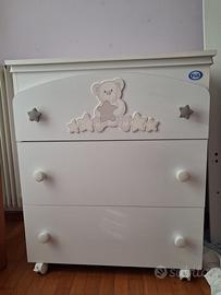 Cameretta completa marca Pali, colore neutro bianco, composta da: - armadio con due ante e cassettone - fasciatoio/cassettiera con vaschetta incorportata (non presente il materassino di appoggio) - lettino con sponde Già smontata Ulteriori foto in privato Disponibile solo per ritiro di persona