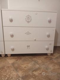cameretta completa per bimbi, composta da: fasciatoio con vaschetta, cassettiera, armadio a due ante, usata poco. Vendo per causa trasloco.