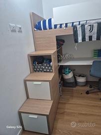 Vendo cameretta come da foto nuova utilizzata molto poco e solo un anno. Acquistata in un mobilificio rinominato e di qualità. Vendo per inutilizzo e passaggio a un lettino basso. La cameretta comprende gradini composti da cassetti, libreria incorporata scrivania e cassettiera a due cassetti. Senza materasso.