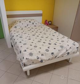 cameretta nuova di esposizione , completa di armadio cabina ad angolo , letto di cm. 120 con rete e materasso , comodino , scrivania con varie mensole e accessori. Colore come foto. Le misure sono cm. 160 x cm. 115 l'armadio , la scrivania cm. 150 x cm. 60 , letto cm. 130 x cm. 205 . Visibile in showroom.