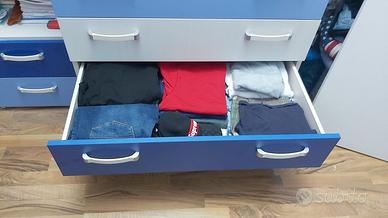 Vendo cameretta nuovissima come da foto esclusa di letto ed accessori solo il mobile.Acquiststa in mobilificio composta da armadio con cassetti libreria letto sopra scala con gradini contenitori ,scrivania e mensole