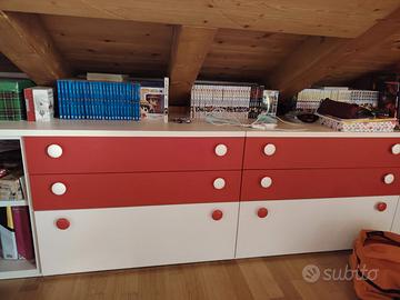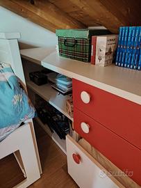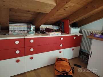 Cameretta composta da doppio letto, 3 cassettiere separabili e una libreria, un armadio in ottimo stato come nuovo. Materiale legno di qualità da mobilificio.
