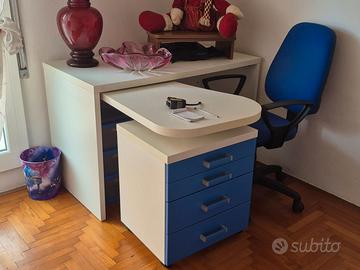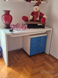 cameretta completa con letto da una piazza e mezza lunghezza 2.10 larghezza 1.23 h 50 scrivania con tavola a scomparsa lunghezza 1,20 larghezza 0,60 h 0,76 completa di 4 sacchetti in omaggio comodino e materasso zona forcellini no perditempo