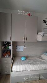 vendo cameretta con armadio ponte e cabina armadio colore Rovere con scala esclusiva è due piccole mensole le due piccole mensola quattro cassetti e due armadi grandi e uno piccolo
