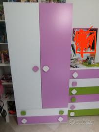 cameretta come nuova 2 - armadio a 2 ante con 2 cassetti 1 - cassettiera a 6 cassetti 1 - letto contenitore 1 - scrivania con mensole