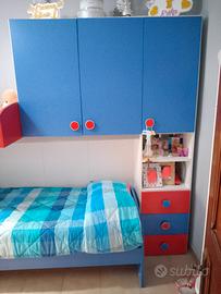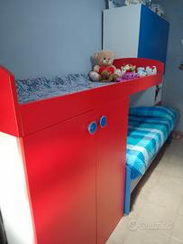 Cameretta rossa e blu adatta per 2 bambini. In basso va inserito un cassetto grande di colore rosso che nella foto non si vede. Non ci sono i materassi. Trasporto e smontaggio a carico dell'acquirente.