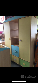 Cameretta Pali modello Carosello, completa di letto/culla trasformabile in singolo, comodino e armadio. Tenuta benissimo. Ritiro a mano su Roma