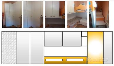 Cameretta 2 letti a soppalco angolare composta due pareti attrezzate