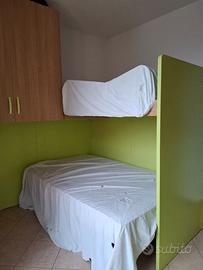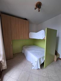 vendo cameretta compreso di materassi 1 da una piazza e mezza e una da una piazza nuovo mai utilizzato i gradini sono contenitori e in ottime condizioni unico difetto lo si vede nella foto ingrandita per qualsiasi informazione non esitate a contattarmi non spedisco consegna a mano