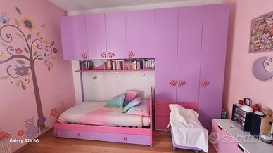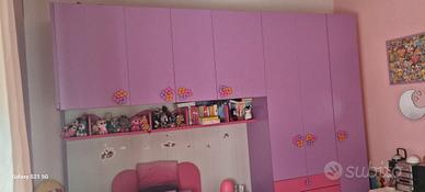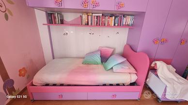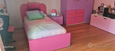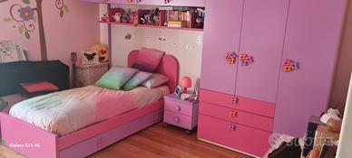 Vendesi cameretta come nuova marca battistella, composta da armadio a ponte, letto singolo con cassetti, comodino, mensole. non sono inclusi materasso, scrivania e sedia. misure armadio: Lunghezza m. 3,48 - altezza m. 2,60 - profondità cm. 60. se può essere utile disponibile anche libreria. La cameretta è già tutta smontata.