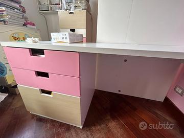 Si vende stanza per bambina comprata all’Ikea con letto superiore, armadio, scrivania con sedia e lampadario. La stanza è componibile come si preferisce e abbiamo le istruzioni con le varie posizioni possibili. Per maggiori foto e informazioni scrivete in privato.