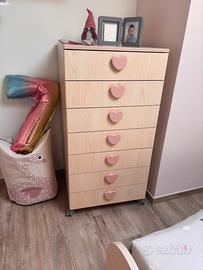 Vendo cameretta per bambina composta da 1 armadio a 2 ante larghezza 100 profondità 60 altezza 228, settimanale larghezza 60, altezza 118 profondità 56. Comodino larghezza 45 altezza 56 profondità 35. Letto con doga in legno ad 1 piazza standard. 2 mensole 25* 120. Tutto perfetto, come nuovo.
