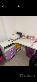 Vendo Cameretta Completa a Ponte per Bambina/Ragazza – Lilla, Bianco e Rosa Vendo intera cameretta coordinata sui toni del lilla, bianco e rosa. In ottimo stato, perfetta per ottimizzare lo spazio con stile. Zona: Cunardo VARESE *La cameretta include: *1. Letto a castello basso salvaspazio* - Letto superiore singolo con sponda di sicurezza a rete bianca, materasso con fantasia rosa incluso - Secondo letto estraibile sotto, con materasso incluso - 4 cassettoni capienti sotto il letto inferiore per giochi o biancheria - Scaletta laterale con 4 gradini che fungono anche da cassetti contenitore viola/bianco *2. Armadio angolare a 1 anta* - Struttura a tutta altezza, sfrutta perfettamente gli angoli - Colore bianco opaco con anta frontale lilla e maniglia lunga rosa - Capiente, ideale per vestiti e biancheria *3. Scrivania angolare a L con cassettiera* - Piano bianco molto ampio, perfetto per studio, PC o hobby - Cassettiera a 3 cassetti lilla con maniglie bianche, su ruote - Tanta superficie e spazio sotto per organizer *4. Set 2 mensole da parete* - 1 mensola lilla per cornici e foto ricordo - 1 mensola rosa per soprammobili e collezionabili *Condizioni generali*: usata ma in ottimo stato. Qualche leggero segno d’uso normale sul piano scrivania. Tutti i mobili sono robusti e funzionali. *Prezzo*: [700] trattabile per vendita in blocco. Valuto anche vendita pezzi singoli. Perfetta per chi cerca una soluzione completa, ordinata e già abbinata. Per info e foto aggiuntive scrivetemi in privato