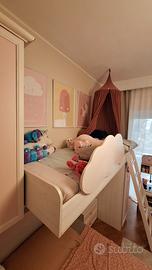 Cameretta per 2 bambine in condizioni ottime Comprende: - struttura letto a castello con due armadi - letto francese con cassettone apribile porta oggetti - comodino - libreria a caselle - settimino - scrivania abbinata compresi materassi. colore rosa tenue e motivi decorativi a forma di nuvola. Cameretta stupenda, pagata oltre 2500 euro. vendesi a 450 euro posso fornire ulteriori foto, per favore no curiosi ma solamente se interessati smontaggio e trasporto a carico dell'acquirente. ritiro in zona cassia roma nord