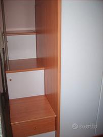 Vendo cameretta per bambini di ottima qualità, realizzata con solida struttura in ciliegio e finiture in laminato color lilla e ciliegio. La cameretta si presenta in eccellenti condizioni, sempre ben tenuta e senza difetti rilevanti. Ideale per chi cerca una soluzione resistente, funzionale e dal design caldo e accogliente. Caratteristiche principali: - Struttura robusta in ciliegio - Colori: lilla e ciliegio laminato - Struttura a ponte con letto superiore e letto inferiore (utilizzabile anche come divano) - Letto superiore con protezione - Scala di accesso al letto superiore con gradini utilizzabili come pratici vani contenitore/armadietti - Ottima qualità dei materiali - Perfetta per cameretta bimbi/ragazzi - Già smontata per il trasporto Vendo esclusivamente per necessità di liberare spazio in soffitta. 📍 La cameretta si trova al terzo piano 🚚 Ritiro e trasporto a carico dell’acquirente ❗ Materassi non inclusi ⭐ Prezzo trattabile