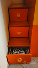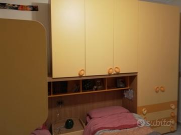 camera completa di tre letti di cui due non fissi accessoriati con ruote con freno reti a doghe in legno e materassi Dorelan ancora in ottime condizioni. Comodino vano porta giochi e sponda tutti accessori .le ante e cassetti auto frenanti . Il letto in alto si raggiunge da una scala anch'essa con cassetti auto frenanti e un grande vano porta giochi o coperte . Vendo per cambio arredo