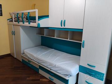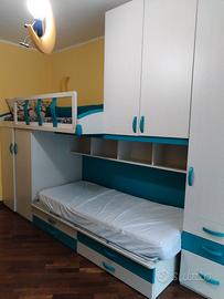 Cameretta per bambini (Mondo Convenienza), 2 letti, armadiatura, scrivania, mensole (no materassi).