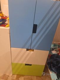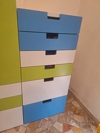 Cameretta Ikea composta da: letto a castello con matrassi +2 armadi + 2 mobiletti +1 cassettiera