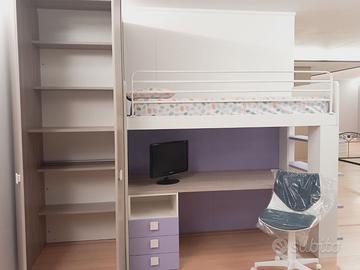 CAMERETTA PER BAMBINI CON SOPPALCO COLORE BIANCO E LILLA. MISURE L. 340 P.136. H. 259 (ARTICOLO DA ESPOSIZIONE)