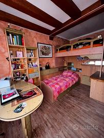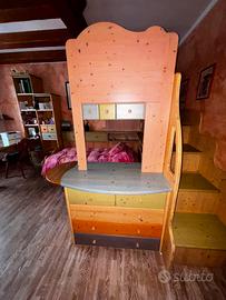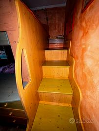 cameretta in legno completa di tutto scale letto a castello scrivania e scaffali