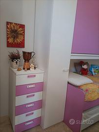 Cameretta composta da armadio a ponte con doppio letto, il secondo estraibile. Regalo materassi ortopedici. 500€.