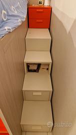 Cameretta marca Nidi anno 2017 Composta da armadio, libreria, cassettiera, letto rialzato con gradini ( contenitori ) e scrivania; attualmente il tutto montato in una stanza di m 3x4, condizioni perfette.