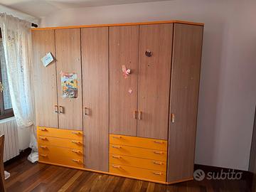 Cameretta completa di armadio lungo 2,60m, due comodini, una scrivania completa di sedia e due letti singoli. Prezzo trattabile