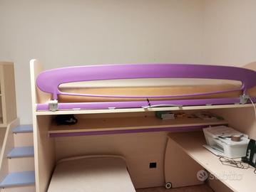 Cameretta per bambini,letto a castello completo di materassi.La camera è completa come da foto con armadio grande,cabina armadio ,libreria e scrivania.Ottime condizioni .Il pagamento deve essere effettuato dopo aver visionato lo stato della camera e prima di iniziare lo smontaggio.Smontaggio e trasporto sono a carico dell acquirente