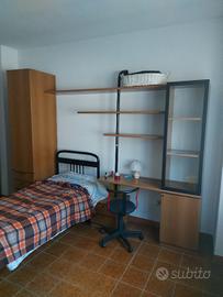 Cameretta per bambini e ragazzi, letto singolo, con scrivania , libreria e comodino, sedia girevole inclusa, tutto incorporato, ottima per chi ha poco spazio.