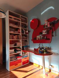 Camera Colombini in ottimo stato, composta da: ponte scorrevole 205 c/2 ante - cabina armadio rettangolare- colonna libreria a parete - boiserie a muro "topolino" - scrivania penisola 150 - letto topolino con rete a doghe - comodino 3 cassetti - maniglie Lego