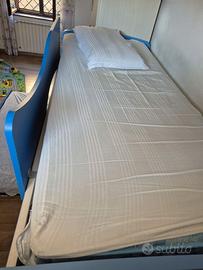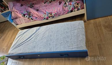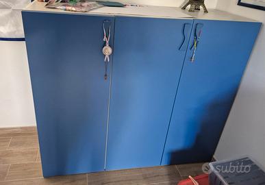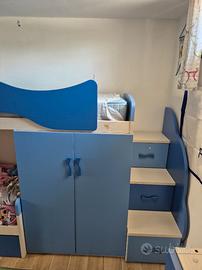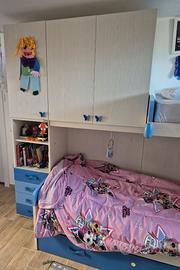 Vendesi cameretta per bambini marca GIESSEGI in ottimo stato. Composta da corpo principale a ponte con tre letti, dimensioni: Lunghezza 405, Altezza 228,5, Larghezza massima 100. Completano la cameretta blocco tre armadi attualmente a parte ma che può esser montato al posto dei tre armadi più bassi di colore grigio attualmente montati nella composizione principale. Le dimensioni sono: Lunghezza 151, Altezza 129, Larghezza 158. Presente anche una libreria a muro o posizionabile a terra, ciascun blocco delle seguenti dimensioni: Lunghezza 200, Altezza 30, Larghezza 27. Completa di due reti e due materassi. Smontaggio e trasporto a carico dell'acquirente.