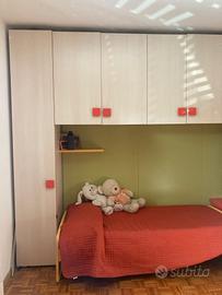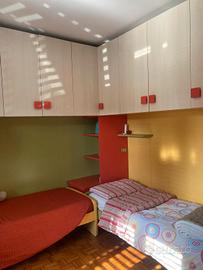 cameretta utilizzabile anche da adolescenti composta da ampia scrivania,comodino, armadio capiente, due letti, mensole, pareti colorate, materassi sfoderabile in buon stato, fatta su misura.
