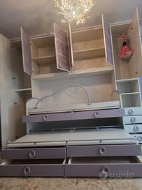 Cameretta per bimba a 2 posti letto, uno a scomparsa. Ampi armadi e cassetti in condizioni ottime e ben tenuta.