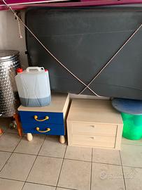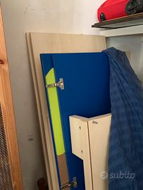 Vendo cameretta intera compresa di: letto con testata, comodino, cassettiera alta, cassapanca con cassetti, armadio con cassettiera interna. Colori principali verde e blu. Trattabili. No spedizioni.
