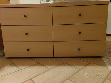 Abbinate tre cassettiere: due più alte composte da 7 cassetti ciascuna (Dimensioni: L 57 / P 42 / A 120) e una più bassa dotata di 6 cassetti (Dimensioni: L 120 / P 42 / A 55).