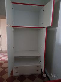cameretta per ragazzi composta da armadio (H 2,35 - profondità 0,60 - larghezza mt. 1 00) , n. due letti , n. 1 comodino, n. due sedie. Smontaggio e trasporto a carico acquirente.