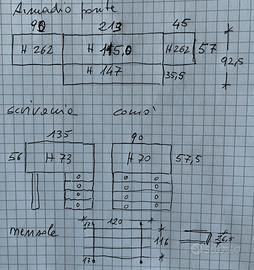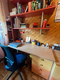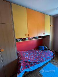Vendo cameretta per ragazzi COMPLETA di letto singolo, armadio a ponte, scrivania, libreria a scaffali e cassettiera (sedia esclusa). Condizione: ottimo stato, no graffi. MISURE ARMADIO+LETTO: 348x262x92,5 (INGOMBRO TOTALE) MISURE SCRIVANIA: 73x135x56 MISURE CASSETTIERA: 70x90x57,5 MISURE MENSOLE LIBRERIA: 116x120x26,5 Misure precise degli armadi in foto allegata. Smontaggio e spedizione a carico dell’acquirente PREZZO TRATTABILE