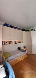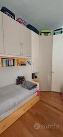Cameretta per ragazzi in perfette condizioni. Vasto armadio quattro stagioni a ponte, con grande cabina angolare. Letto singolo, con secondo letto estraibile. Libreria a giorno posizionata sopra il letto. Su richiesta, posso fornire video dell’intera cameretta. Necessario venire a recuperare personalmente l'armadio e il letto, che posso far trovare già smontati.