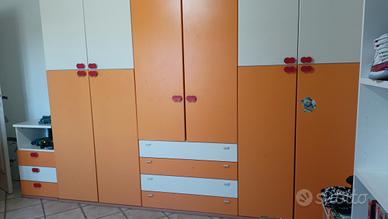 cameretta per ragazzi marca Colombini, composta da armadio sei ante e cassettiera, comodino con tre cassetti, due letti singoli salva spazio con cassettoni, trasporto a carico dell'acquirente. La cameretta verrà smontata entro il 15 dicembre. Consegna in loco. Prezzo leggermente trattabile.