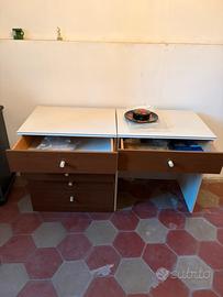 Cameretta con armadio a due ante, letto singolo con porta cuscino,scrivania e cassettiera.