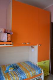 2 moduli di armadio bassi di cui uno posto sotto il soppalco e uno adiacente al letto soppalcato