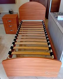 Vendo cameretta tenuta in perfette condizioni, colore marrone, composta da armadio 2 ante, spalliera e rete letto, comodino. Materiale compensato marino. Prezzo trattabile.