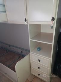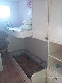 Cameretta con letto a castello,con i rispettivi mobili,scaletta,materassi, l'armadio può sembrare difettosa ma è a causa dell'inclinazione del pavimento inoltre il prezzo è trattabile ,per eventuali dubbi contattatemi.