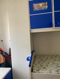 Cameretta 290x255 (di cui armadi ai lati 50cm ciascuno) Secondo letto estraibile a cassetto Scrivania 150x58+ due scrivanie estraibili Unico difetto presente in foto