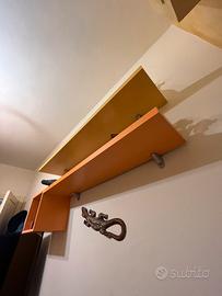 Letto a una piazza e mezzo + comodino + armadio a due ante + cassettone + scrivania con sedia + due menosole da appendere, tutto come allegato in foto.