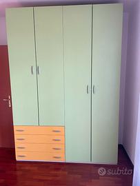 Vendo cameretta bambini con due letti e armadio a 4 ante con cassettiera.