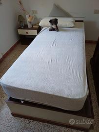 Cameretta con due piccoli armadi con ante a soffietto, ripiano a giorno e quattro cassetti ; completa il tutto testata letto e comodino. Smontaggio e trasporto a carico dell' acquirente
